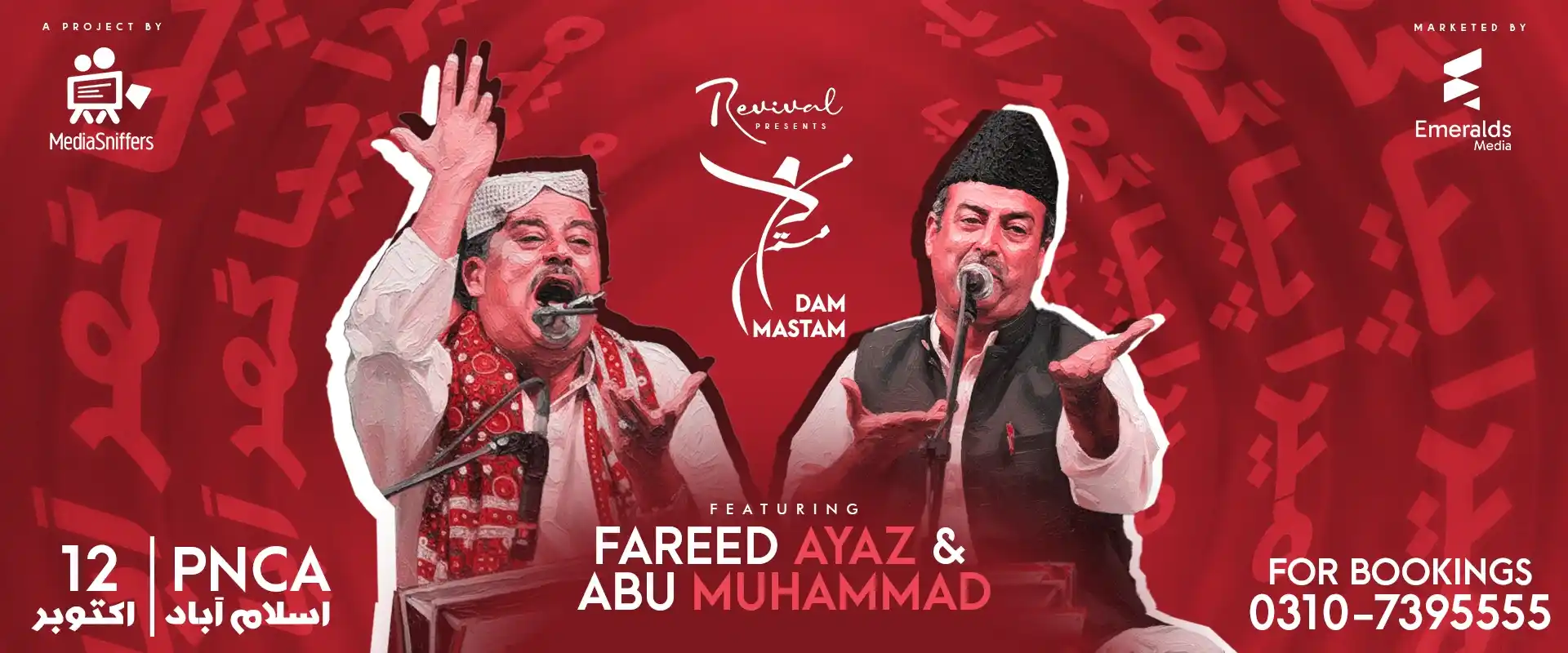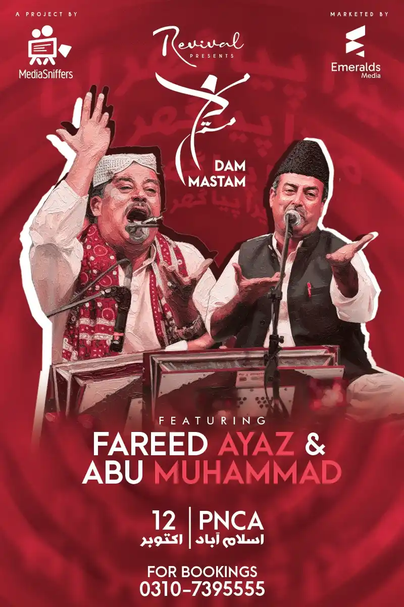 Emeralds Media, in exclusive collaboration with Media Sniffers, proudly announces Revival Episode 6—DAM MASTAM: An unparalleled evening of traditional Sufi music featuring the globally revered masters, Farid Ayaz & Abu Muhammad, who will take the stage at the PNCA in Islamabad on 12th October 2025.